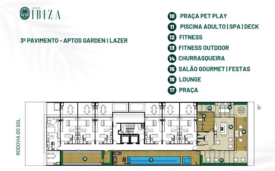 • PRAÇA PET | PLAY • PISCINA ADULTO • SPA • DECK • PRAÇA • LOUNGE • ESPAÇO FITNESS • FITNESS OUTDOOR