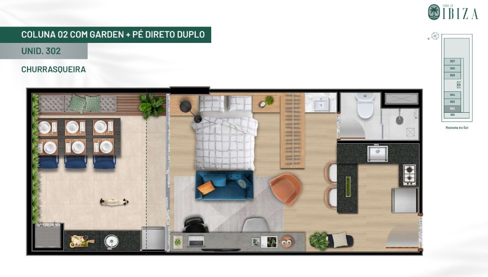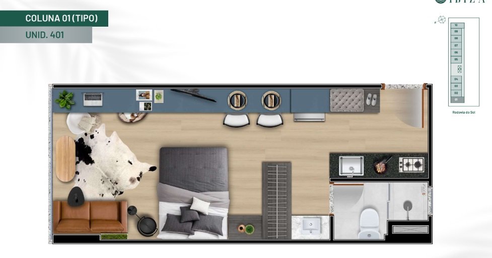 - studios terraço com pé direito duplo de 40 a 49 m2