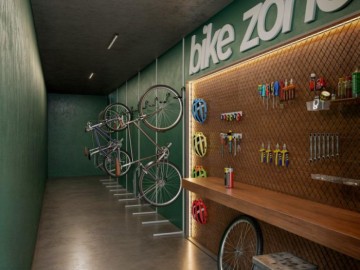 Espaços Funcionais e Compartilhados: Bike Point, Bike Repair (oficina), Cowoking, Sala de Reunião, Mini Mercado, Espaço Facilities, Lava Pés, Pet Wash e Pet Place.