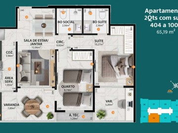 - Coluna 04 > dois quartos com 65,19m²